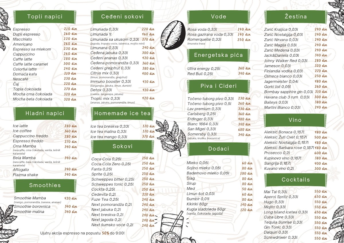 However, a word of advice for early birds: if you plan to visit between 8:00 and 9:00 AM, be prepared for a bustling atmosphere. Sonja noted that this peak hour can see coffee prices ranging from 110 to 130 dinars, and the space can get quite crowded. Yet, the quality of the coffee—an undeniable highlight—remains a rarity worth experiencing in this part of town.